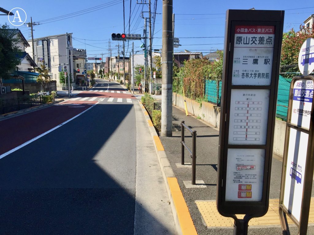 2)調布駅・北口11番のりば→小田急バス【調35】杏林大学病院前行き→〈約13分〉→「原山交差点」バス停下車→〈徒歩1分〉→スタジオ